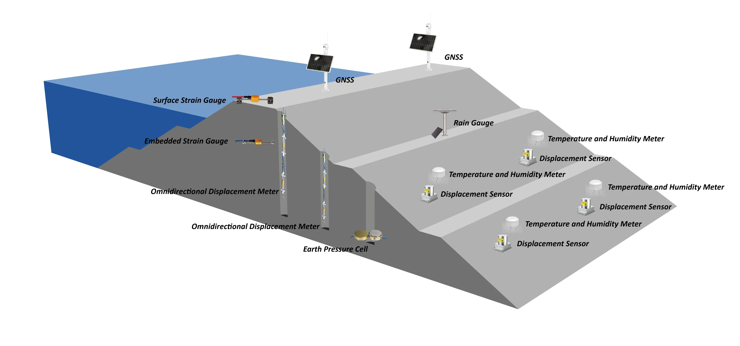 Es zielt auf den Versickerungszustand des Damms und des Dammfundaments sowie auf die hydrologischen Parameter des Stausees ab: